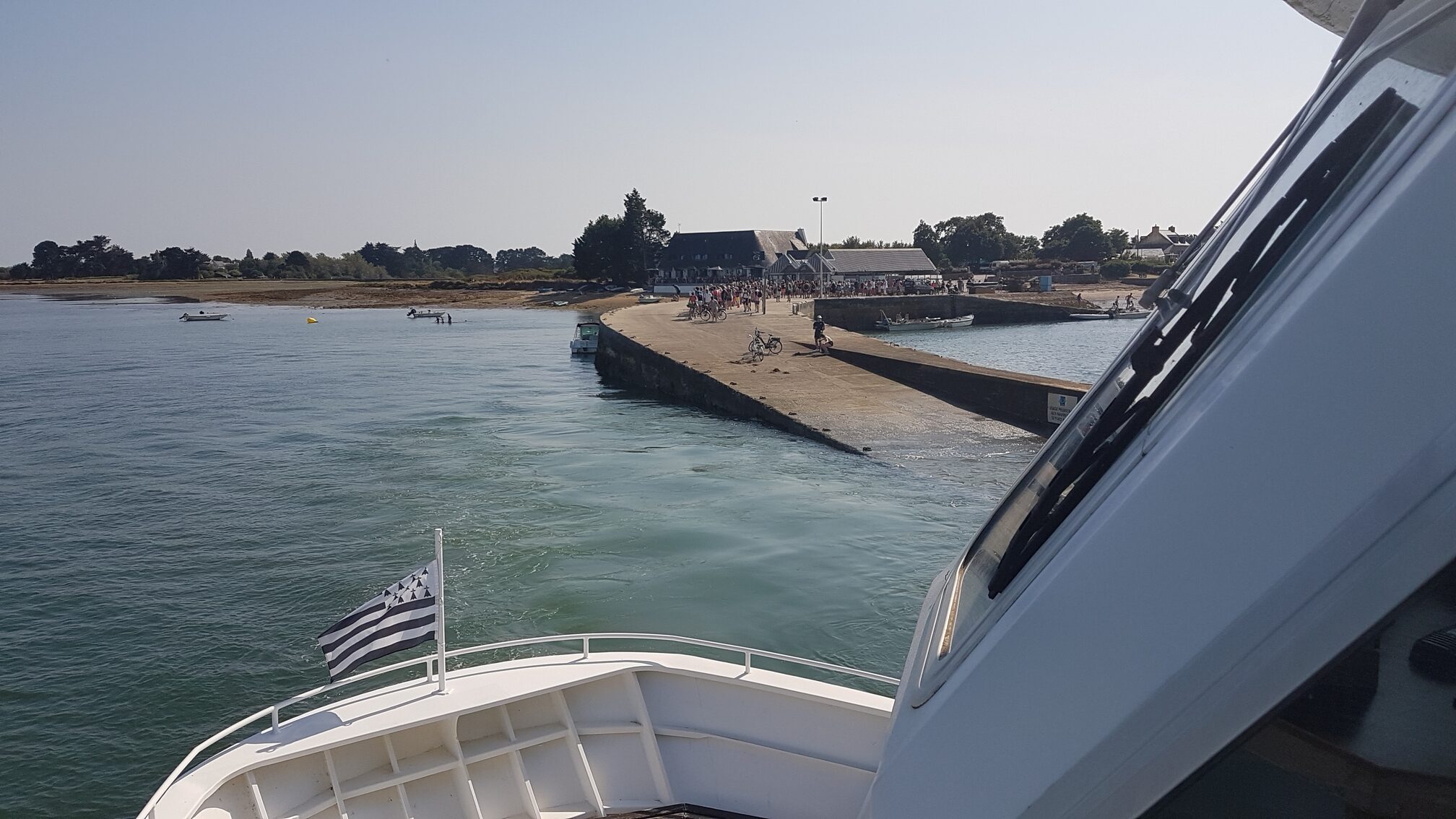 Pour votre embarquement à Le Bono, prévoyez plutôt de vous garer dans le bourg et de descendre à pied au port (côté droit du port, vers le Vieux Pont pour l’embarcadère)